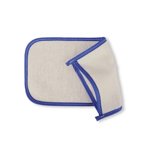 Ideal for safely handling hot oven trays and pans, this MyCafe caterer’s mitt is a professional catering oven mitt designed for busy food environments. Highly valued for its heat resistance, the mitt is a simple, heavy-duty kitchen essential, designed for frequent, continuous use in professional or home kitchens. Made from recycled fibres in white with blue edging.